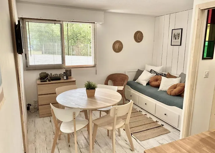 Charmant Appartement Renove 4 Couchages Arcachon Centre, situado a alrededor de 600 metros del Cafe de la Plage, cuenta con un aparcamiento para los que viajan en coche. Los huéspedes pueden llegar al centro de Arcachón en 15 minutos a pie y visitar el Musee Aquarium d'Arcachon, situado a tan solo 550 metros.